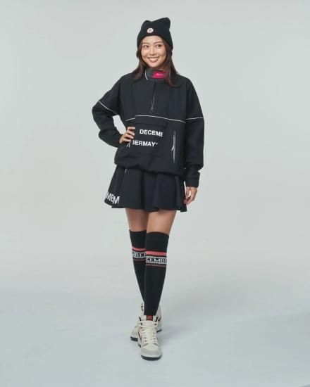 特徴的なカッティングを施したサーキュラーシルエットのフレアーはスポーティーさとガーリーな雰囲気を演出します。さらっとした肌ばなれの良い風合いはスウィングの際ストレスなく、快適な着心地を実感頂けます。