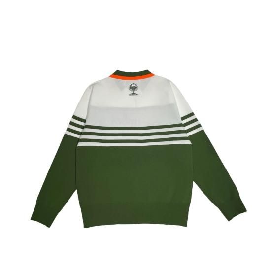 鮮やかな発色が目を惹く軽量ポリエステル素材の襟付きクルーネックニット。アクティブでオールドスクールなスタイルを演出します。